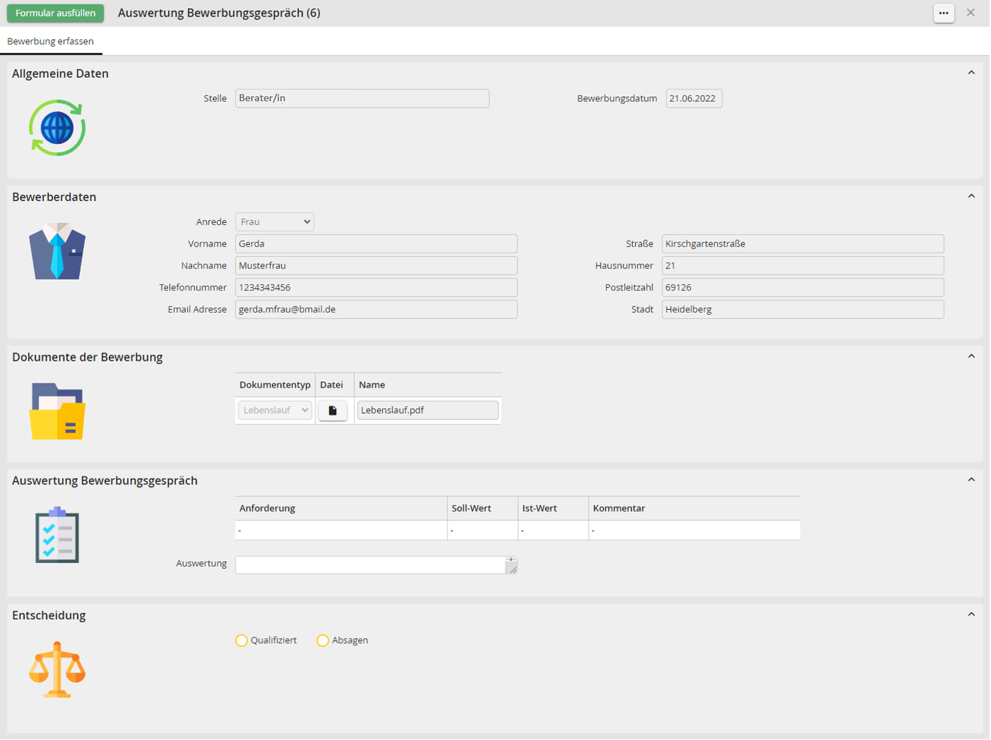 - Abbildung und Erfassung des gesamten Bewerbungsablaufs