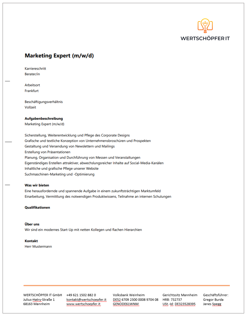 - Einbindung der Bewerbungsmaske auf Homepage oder via URL auf Dokumenten