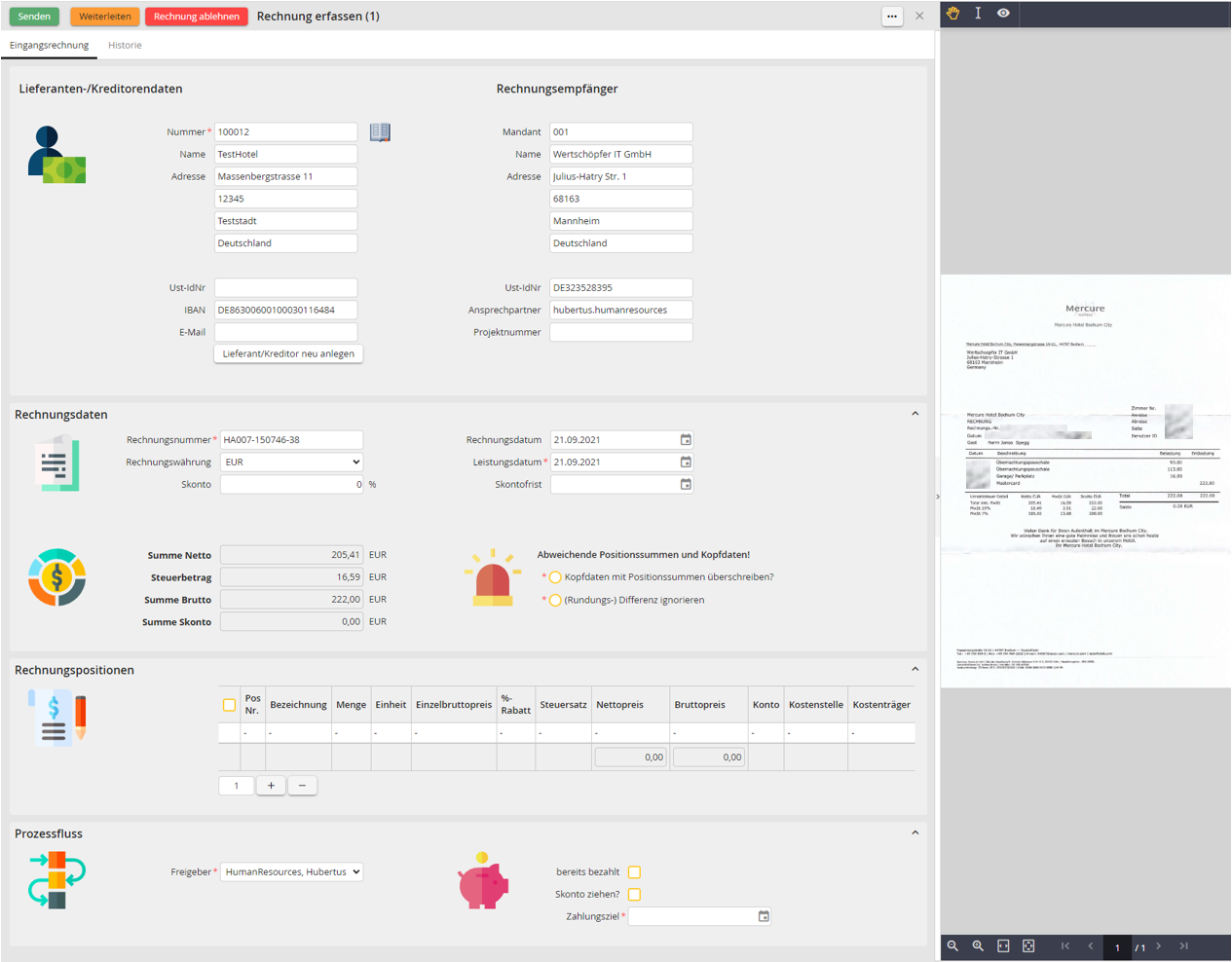 - Einbindung von OCR (Texterkennung) zum automatischen Erkennen der Lieferanten, der Positionen und Summen