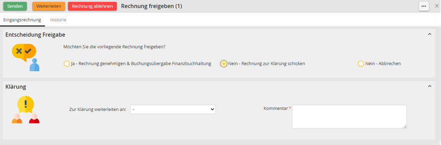- Historie zur Rechnung mit Kommentarfunktion